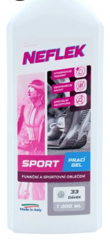 NEFLEK SPORT 1 l prací gel na sportovní a funkční oděvy neutralizující zápach.
