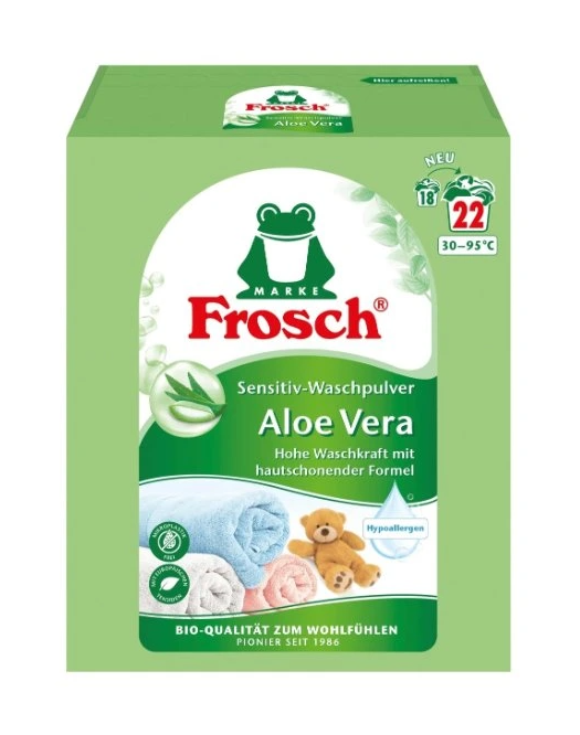 Frosch univerzální prací prášek - je šetrný a ekologický prostředek navržený pro praní bílého i stálobarevného prádla. Tento prací prášek kombinuje sílu přírodních citrusových extraktů s moderními čistícími technologiemi, aby zajistil dokonalou čistotu vašeho prádla. Jeho složení efektivně odstraňuje odolné skvrny, například od kávy, čaje, ovoce nebo trávy, a přitom respektuje potřeby citlivé pokožky i životního prostředí. Prášek je vhodný pro praní při teplotách od 20 °C do 95 °C, což jej činí ideálním pro každodenní použití i pro intenzivní hygienické praní.