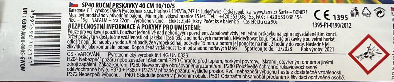 VAROVÁNÍ: Pyrotechnický výrobek tř.1.4G UN 0336