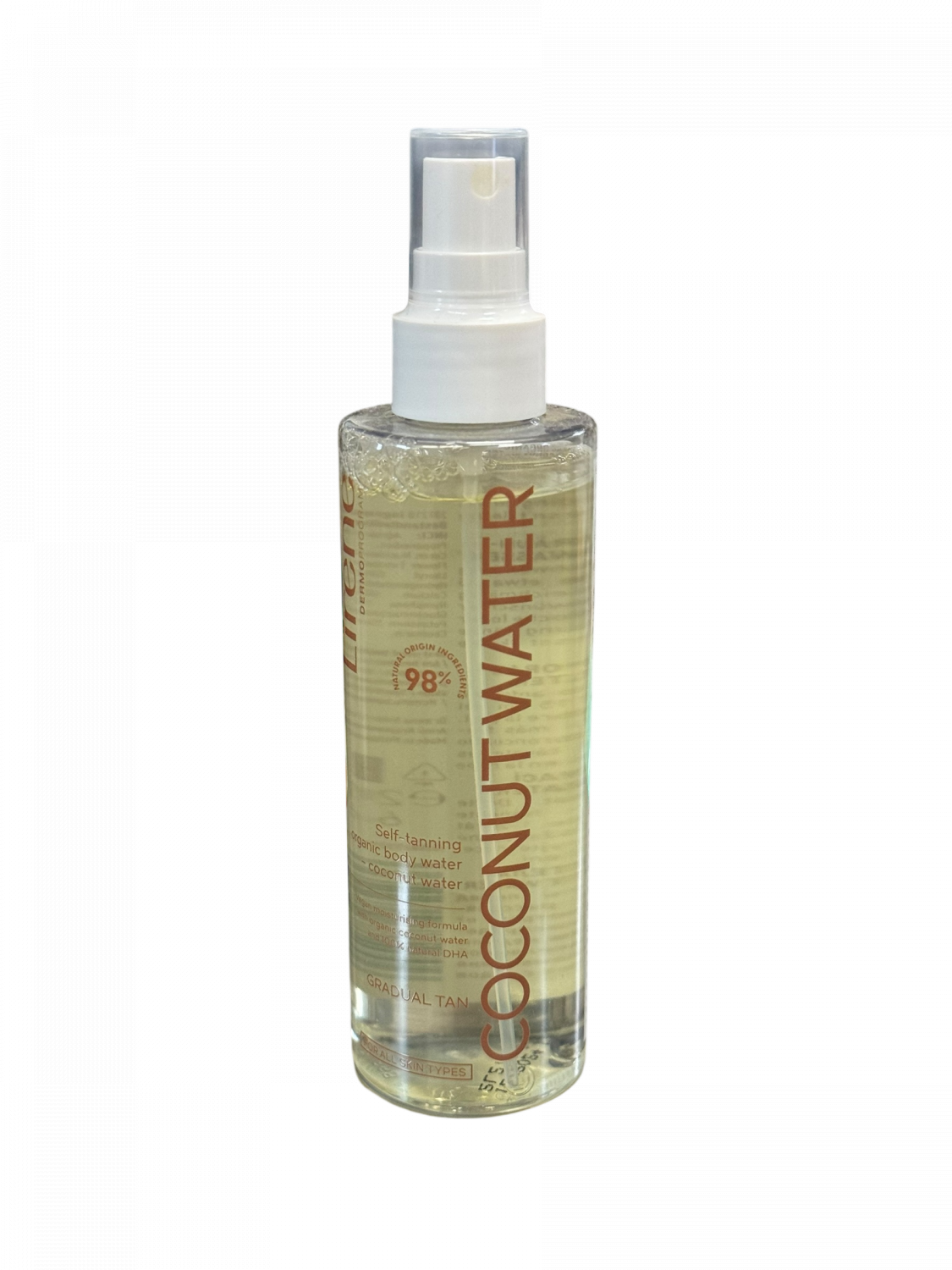 Lehká bronzující voda Lirene PT s vůní kokosu dodá pokožce přirozeně opálený vzhled bez nutnosti pobytu na slunci. Díky jemnému složení se snadno aplikuje, rychle se vstřebává a nezanechává mastný film ani šmouhy. Postupně zvýrazňuje tón pokožky a zajišťuje rovnoměrné, svěží opálení.