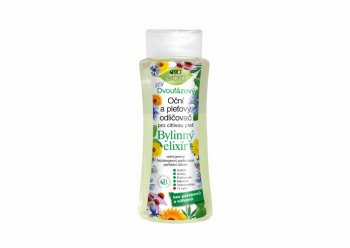Na suché a mastné stíny a make-up. Ojedinělý prostředek k odličování a čištění kožního víčka, očních partií i celého obličeje. Bylinkový odličovač s oblíbenými extrakty ze středoevropských bylin, s častým výskytem v kosmetice, nyní všechny spolu pro maximalizaci jejich účinků. Odličovač nejen rychle, šetrně a bez štípání mastné stíny, ale pleť zvláčňuje a zregeneruje. Odličovač je dvoufázový. Horní olejová fáze precizně a všechny mastné složky dekorativní kosmetiky pleť perfektně vyčistí. Hlavní podíl olejové složky se z pleti postupně odpařuje a pleť zůstane vláčná, čistá, vyživená. Vodná fáze obsahuje všechny ve vodě rozpustné nečistoty, soli pot aj. Před použitím řádně protřepejte a ihned na odličovací tampon naneste odličovač a lehkým otíráním pleť vyčistěte. Elegantní a moderní dvoufázový systém umožňuje dosažení dokonalého účinku bez emulgátorů. Odličovač obsahuje extrakt, olej nebo silici z těchto bylin: cannabis, měsíček, růže, světlík, echinacea, arnika, pampeliška, konopný extrakt, heřmánek, třezalka a ostropestřec. Moderní, elegantní, efektivní. Šetrný k Vám ik přírodě. Chraňte oči před vniknutím přípravku.